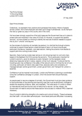 London First and a group of leading business groups and associations in the capital wrote to the Prime Minister with a list of actions and steps to take during recovery from the crisis.